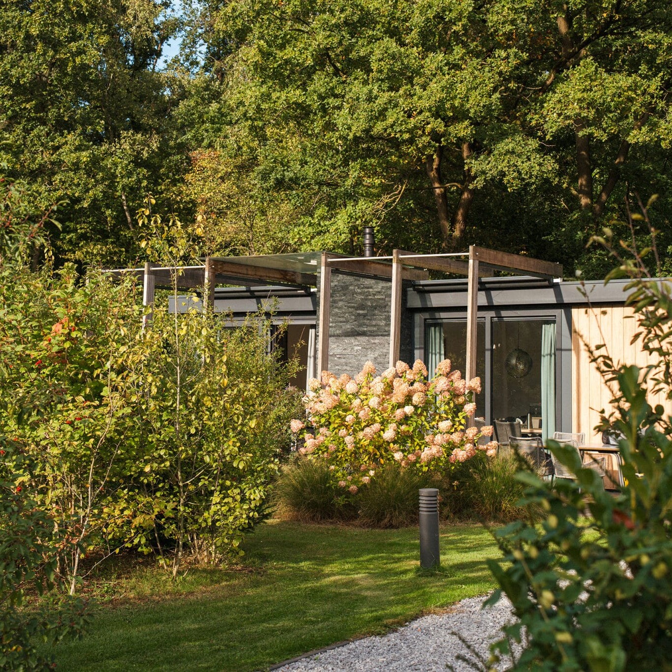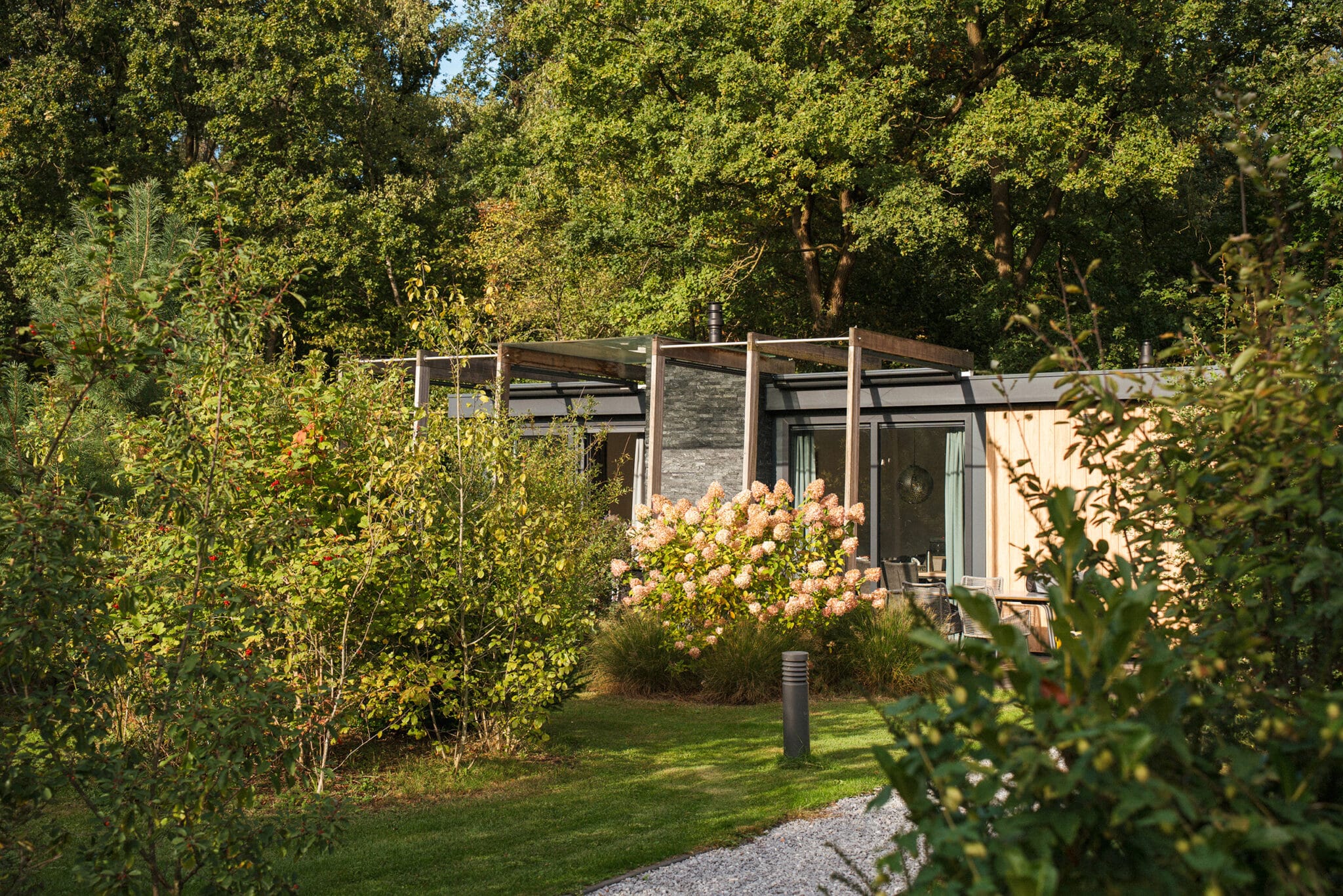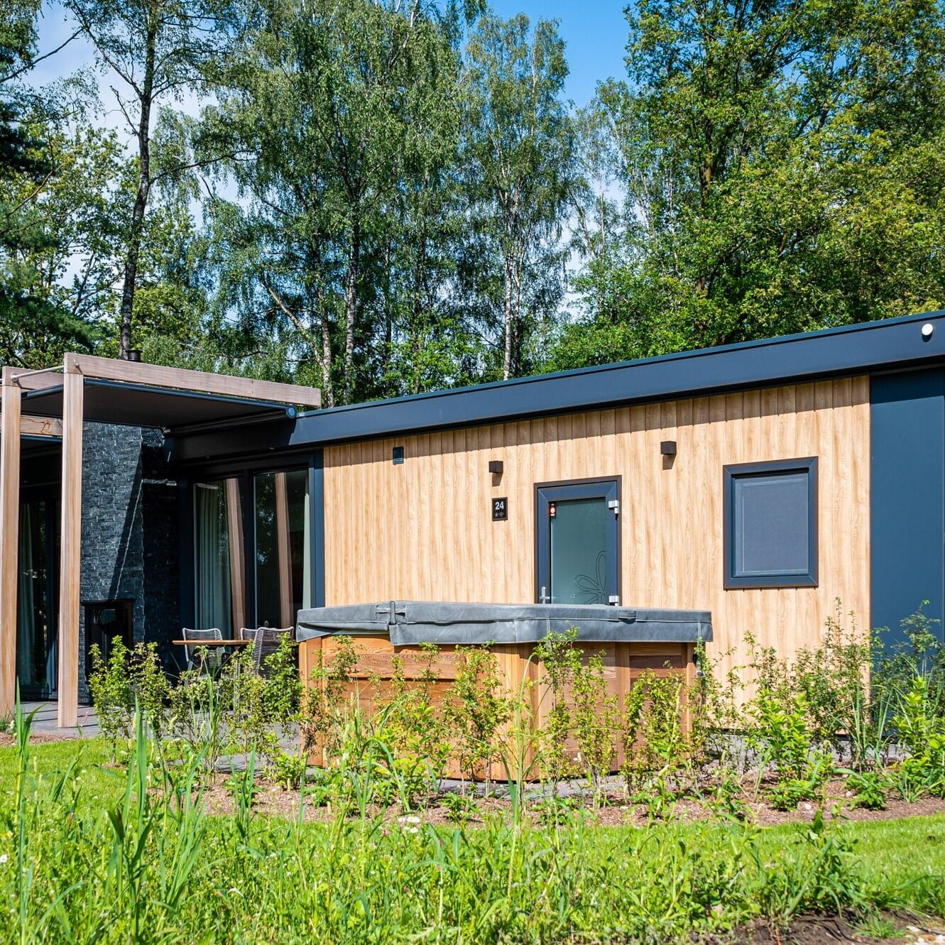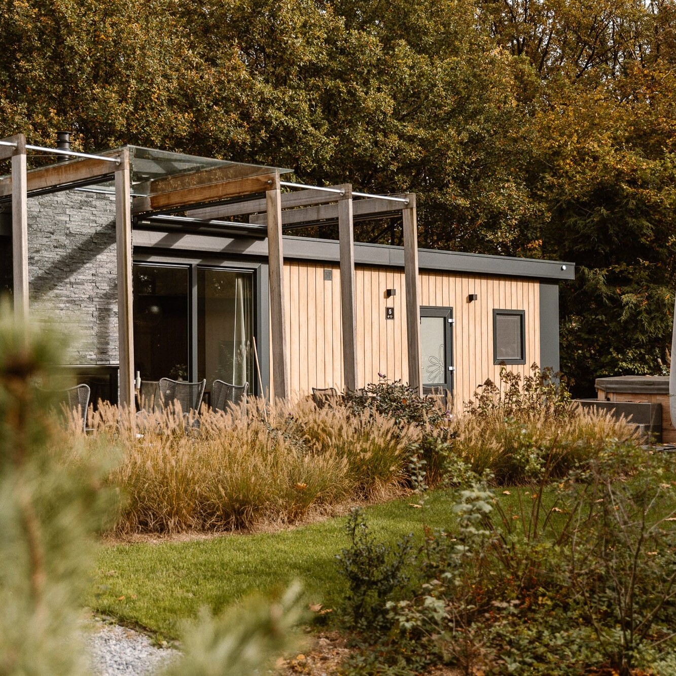 - luxuriöse und freistehende Lodges in einer wunderschönen natürlichen Umgebung Am Rande des Dorfes Markelo Einzigartiges modernes Design mit schön angelegtem Garten und Terrasse Zwei Schlafzimmer, zwei Bäder, Sauna und Spa Fläche der Lodge 70 m² mit zusätzlicher 30 m² großer, begrünter Terrasse