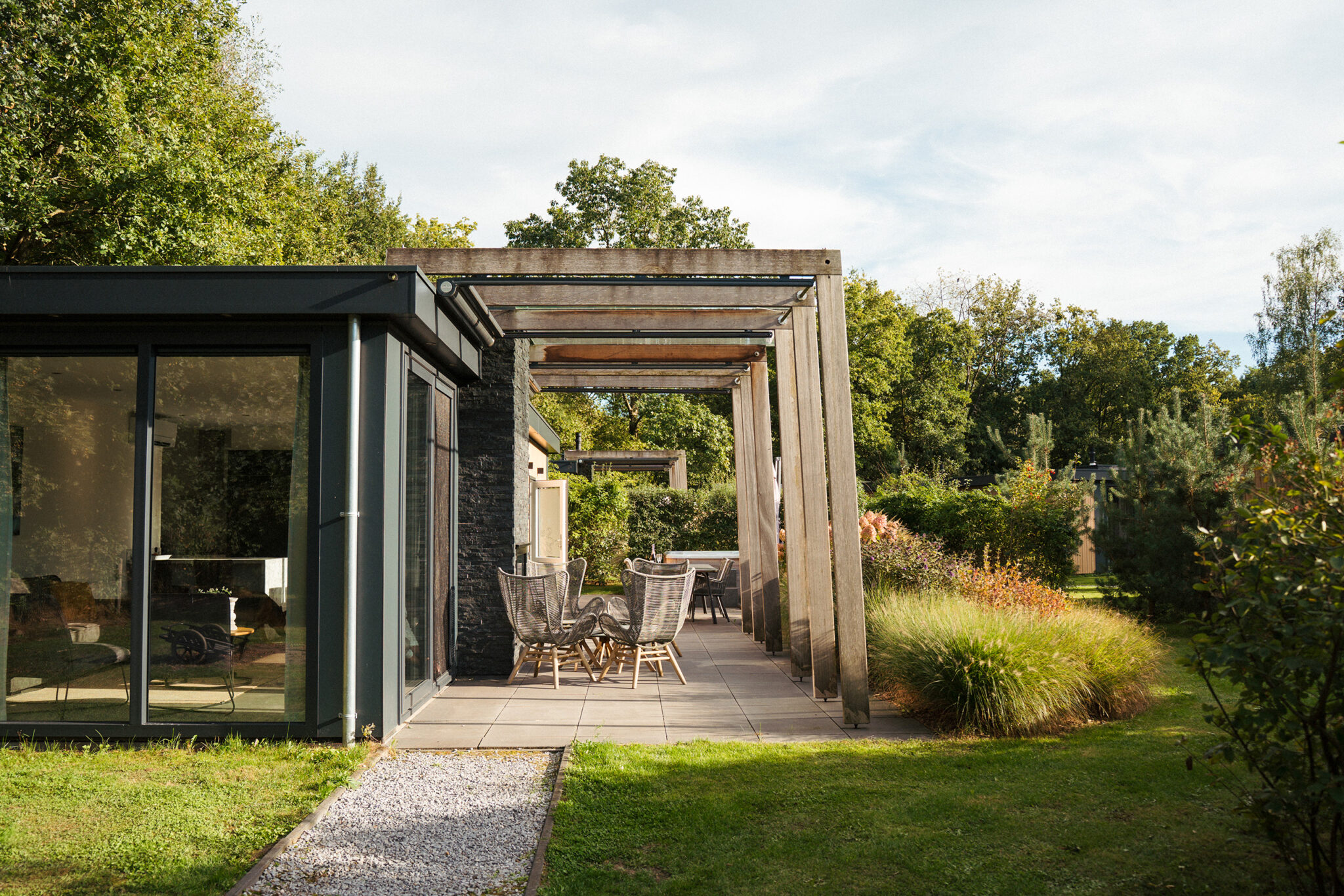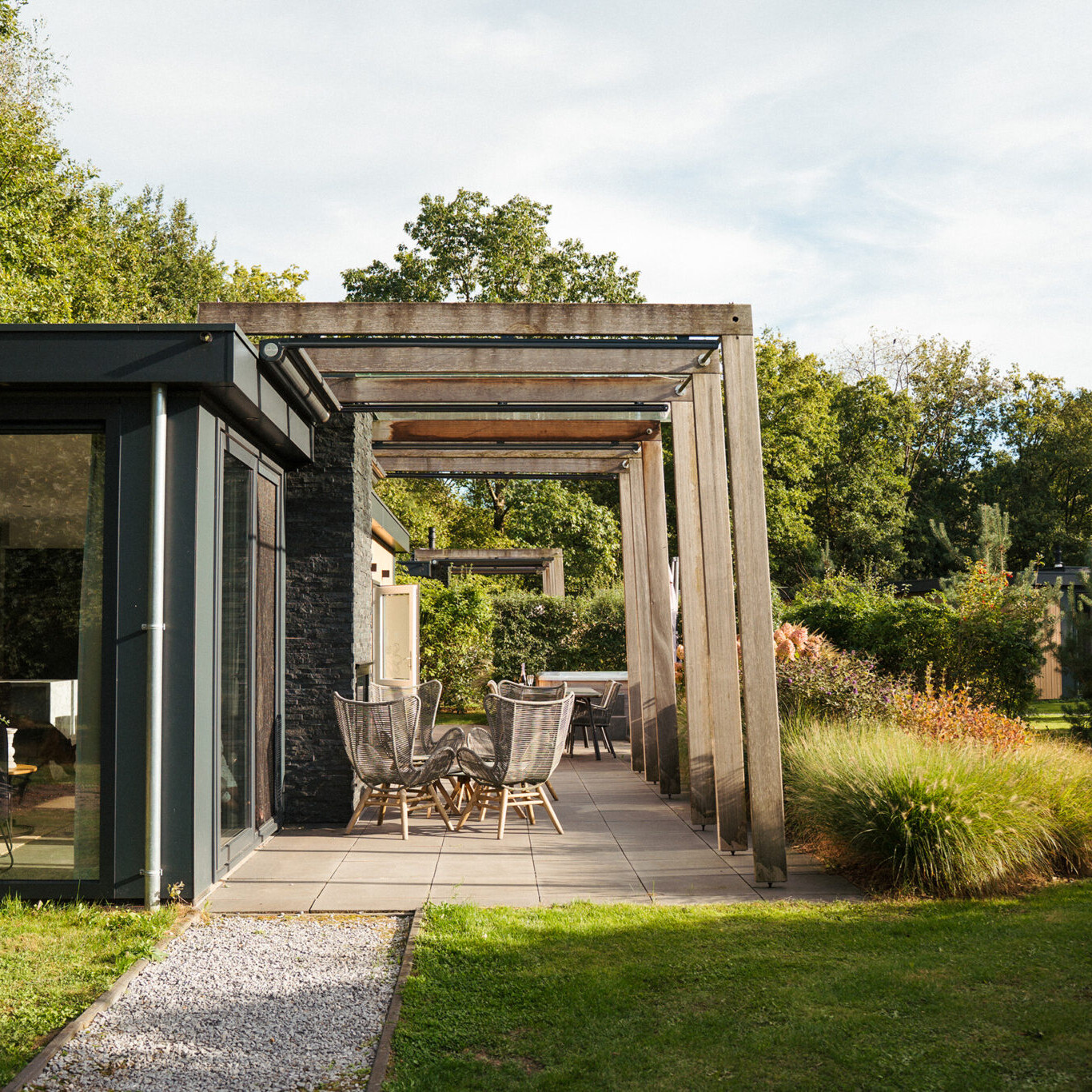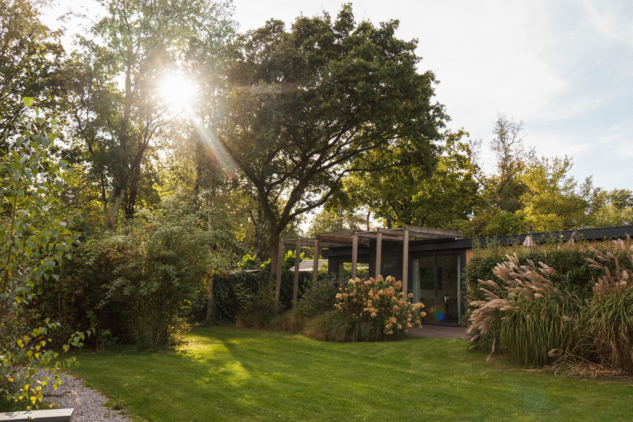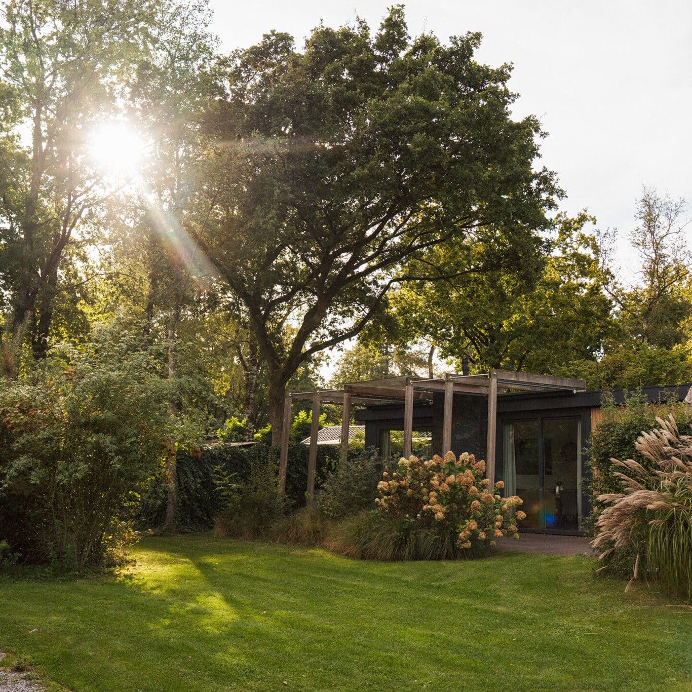 - luxuriöse und freistehende Lodges in einer wunderschönen natürlichen Umgebung Am Rande des Dorfes Markelo Einzigartiges modernes Design mit schön angelegtem Garten und Terrasse Zwei Schlafzimmer, zwei Bäder, Sauna und Spa Fläche der Lodge 70 m² mit zusätzlicher 30 m² großer, begrünter Terrasse