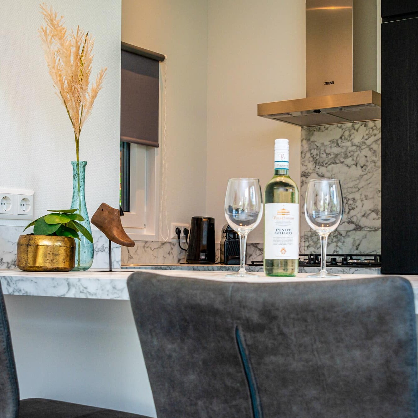 Zwei Schlafzimmer, zwei Bäder und eine Sauna garantieren einen komfortablen Aufenthalt. Natürlich darf auch ein Spa auf der Terrasse nicht fehlen. Die luxuriöse Küche ist komplett ausgestattet, einschließlich einer Nespresso-Kaffeemaschine, und das Wohnzimmer ist gemütlich und geschmackvoll eingerichtet. Willst du lieber über nichts nachdenken müssen? Ergänze deinen Urlaub mit unseren bequemen Bademänteln und unserem Bettenmach-Service und genieße einen sorgenfreien Aufenthalt.